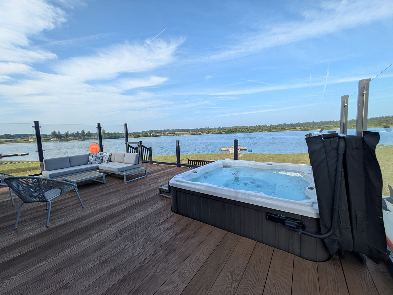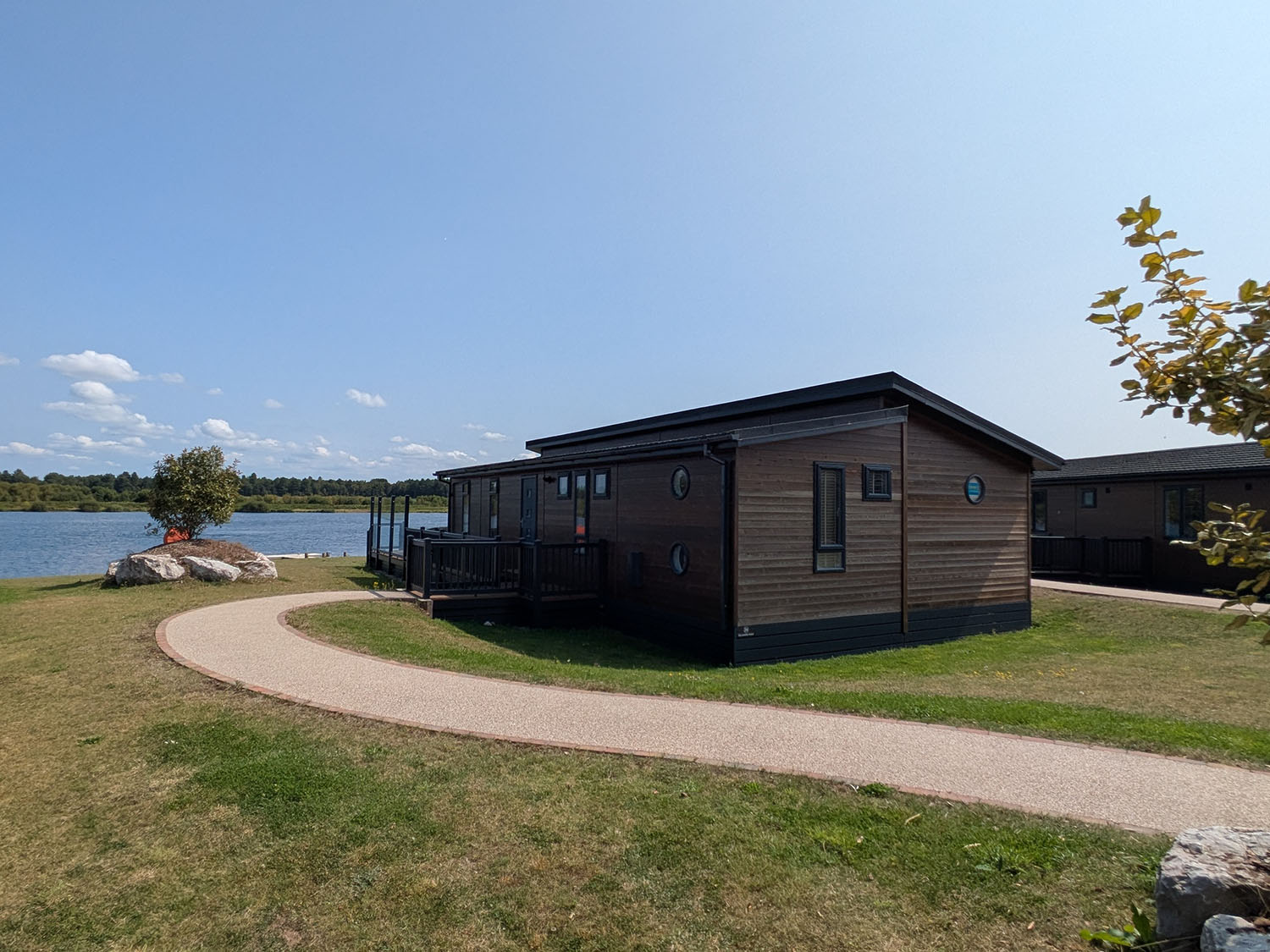 This lodge occupies one of the best plots at Delamere Lake Sailing & Holiday Park, with uninterrupted lakefront views and plenty of privacy.