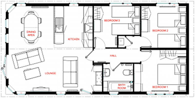When it’s time to turn in, the master bedroom provides a cosy retreat for a restful night’s sleep. Two further spacious bedrooms and a family bathroom with full-size bath make this lodge ideal for family stays or weekends away with friends.