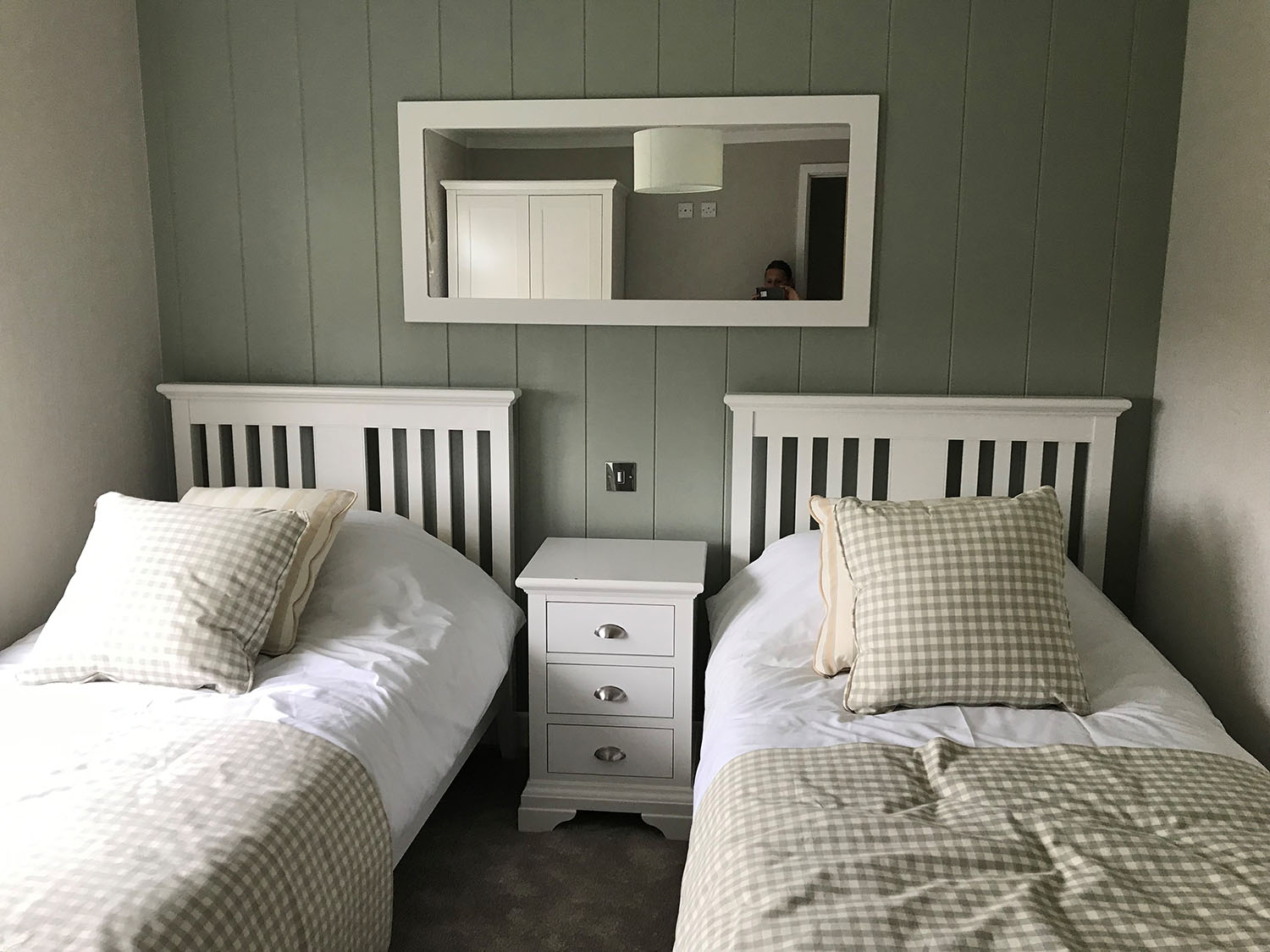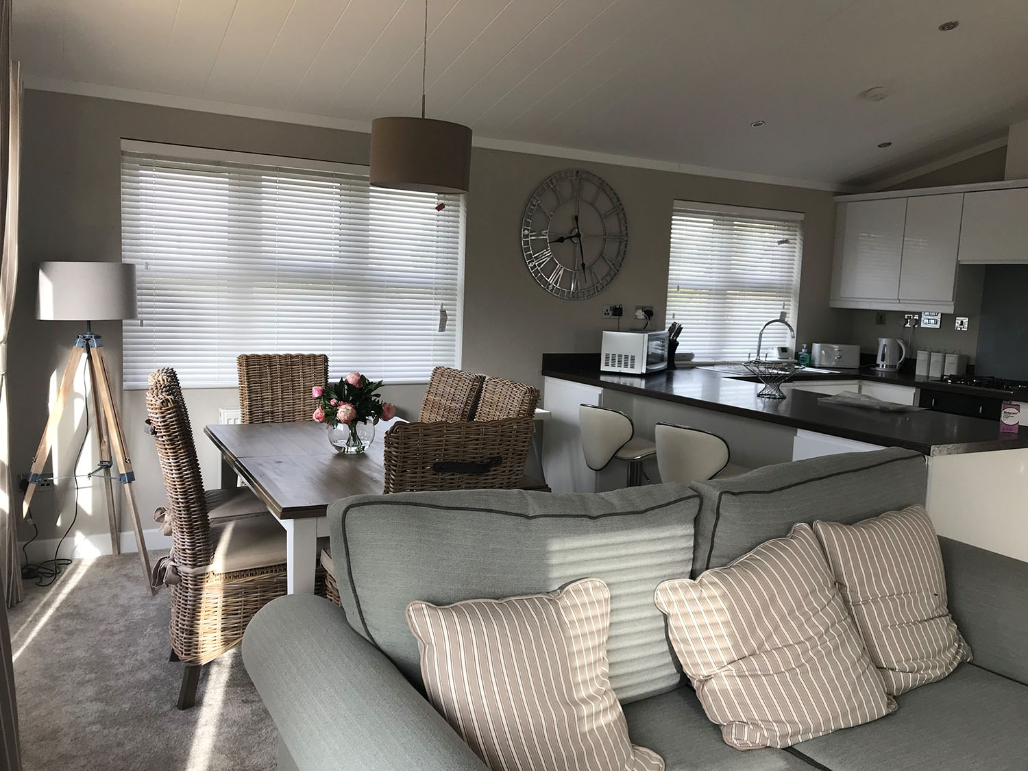 Stepping inside, the open-plan lounge, dining room, and kitchen area with a vaulted ceiling create a bright and spacious atmosphere, adding a touch of grandeur to the lodge. The lodge accommodates 6 people comfortably, with a double bedroom featuring an en-suite shower room and 2 twin rooms. The separate family bathroom adds an extra layer of convenience, providing a relaxing space to unwind after exploring the beautiful surroundings.