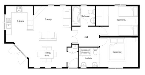 Step inside the lodge, where a bright and spacious open-plan lounge, dining room, and kitchen area greet you. The vaulted ceiling adds a touch of grandeur, creating an airy and open atmosphere throughout. With two comfortable double bedrooms, one featuring an en-suite shower room and sliding robes, and the other providing the flexibility to create either two singles or a king-sized bed, there's room for everyone to retreat in comfort. Additionally, a separate family bathroom offers a relaxing haven to unwind after a day exploring the beautiful surroundings.