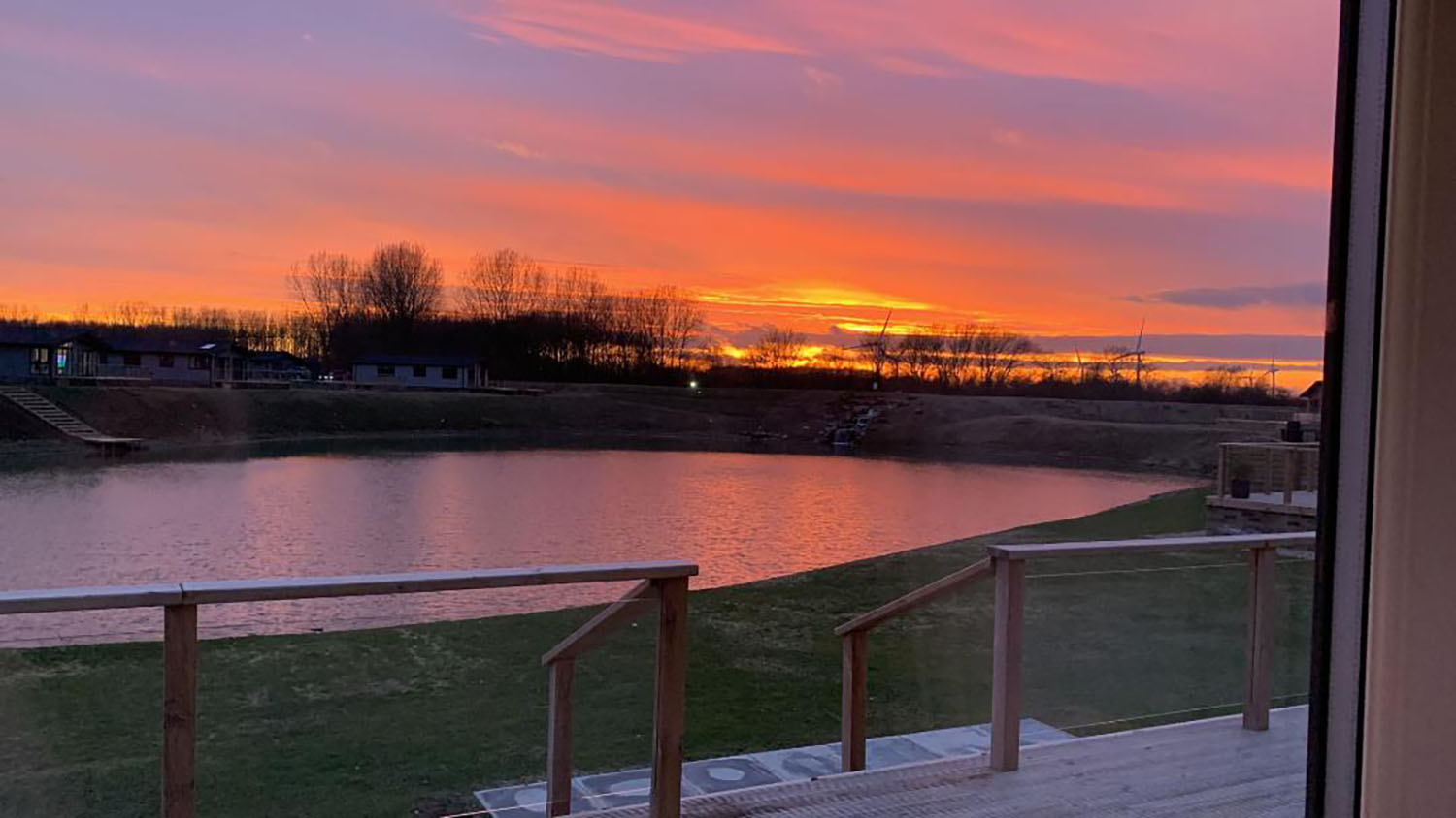 Stunning views over waterfall lake and fields surrounding. Sleeps 6 comfortably with two spacious bedrooms and sofa bed in living area.