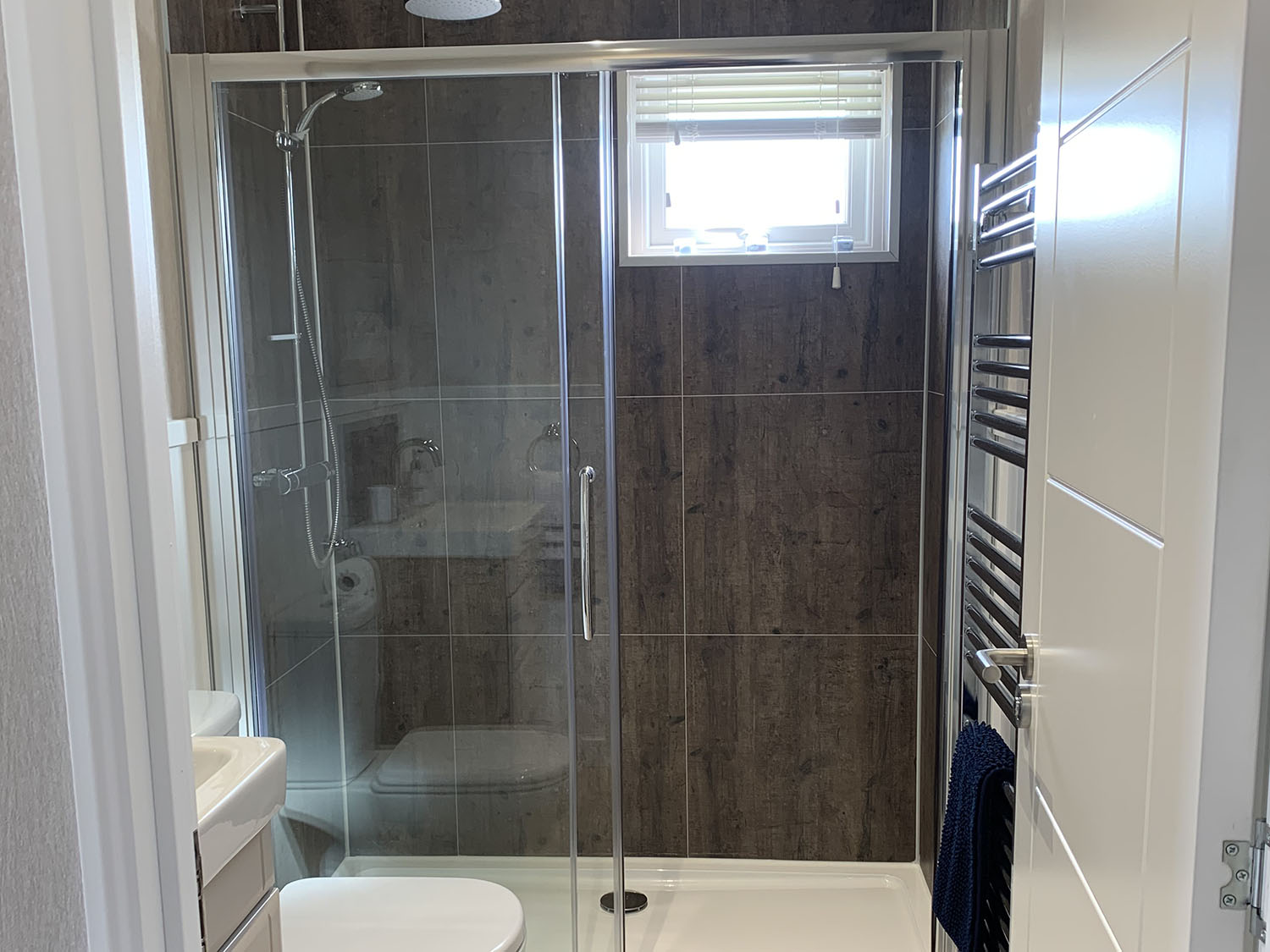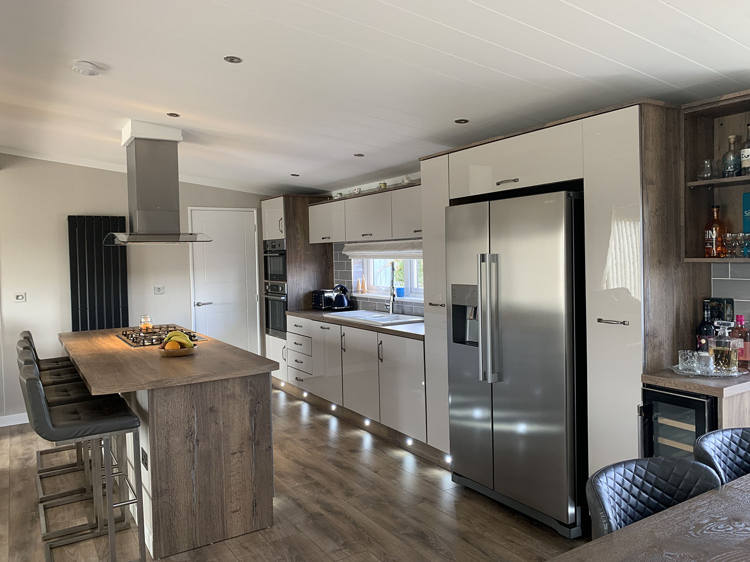 Inside the lodge is custom designed to give large entrance with seating and storage, leading to utility room with integral washing machine and separate tumble dryer. Storage space and LPG gas boiler (serviced May 1st 2024).
