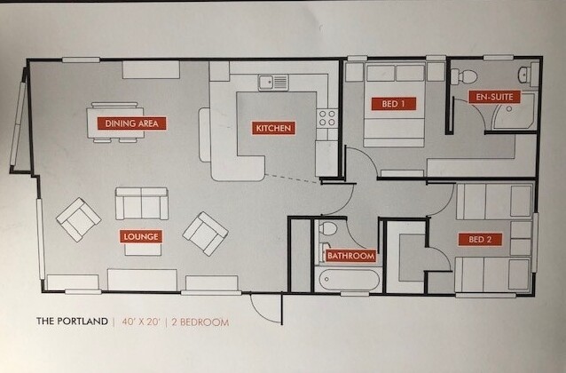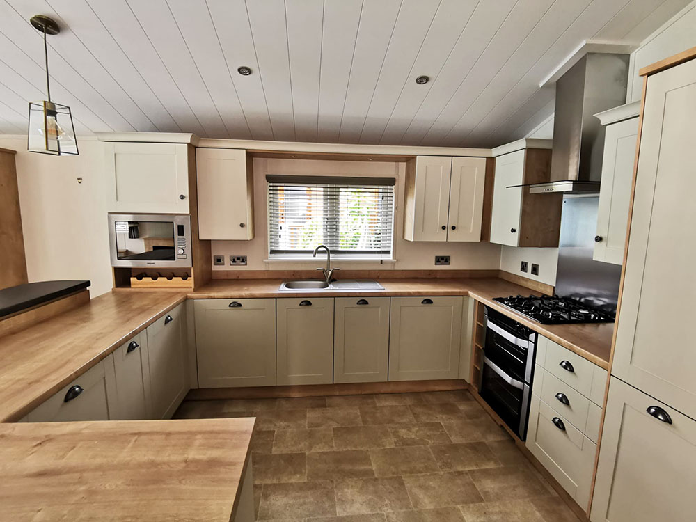 This beautifully presented 40’ x 20’ Willerby Portland lodge offers spacious, stylish accommodation in a peaceful countryside setting. Inside, the open-plan living, dining and kitchen area is bright and inviting, perfect for relaxing or entertaining. There are two comfortable bedrooms, including a master with en-suite shower room and a family bathroom. Recent updates include new fitted carpets throughout and a brand-new shower and cubicle in the en-suite.