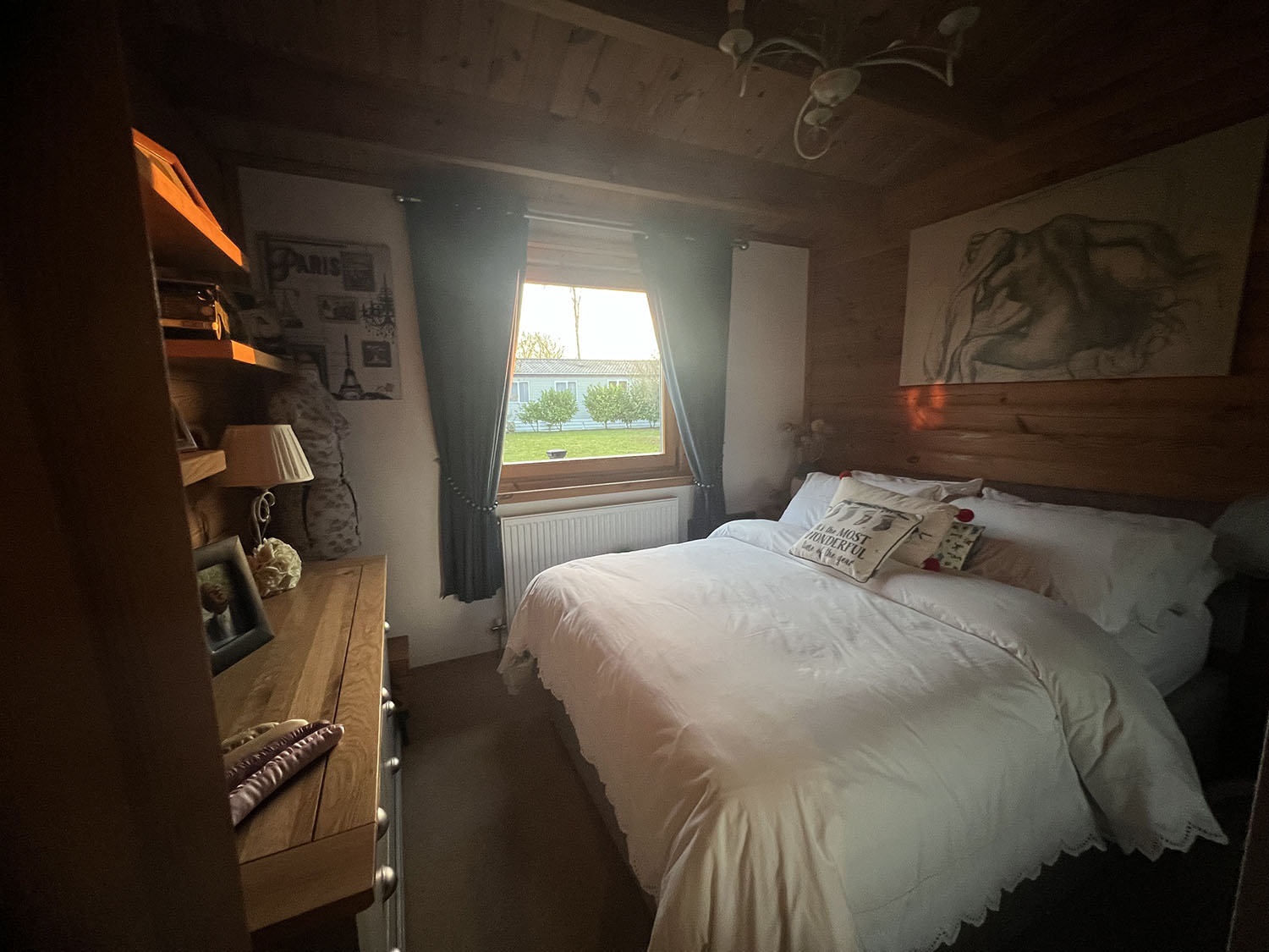 Escape to lakeside tranquillity with this stunning holiday log cabin, perfectly suited for family getaways or an exciting holiday let opportunity. Offering breathtaking views over a peaceful waterski lake, this spacious cabin comfortably accommodates six people, with three double bedrooms. Two of the bedrooms come with fitted wardrobes, and the master bedroom boasts an en-suite wet room with a stylish walk-in cubicle, rain shower, and contemporary tiling. The main bathroom features a generously sized walk-in shower, adding to the lodge's modern feel.