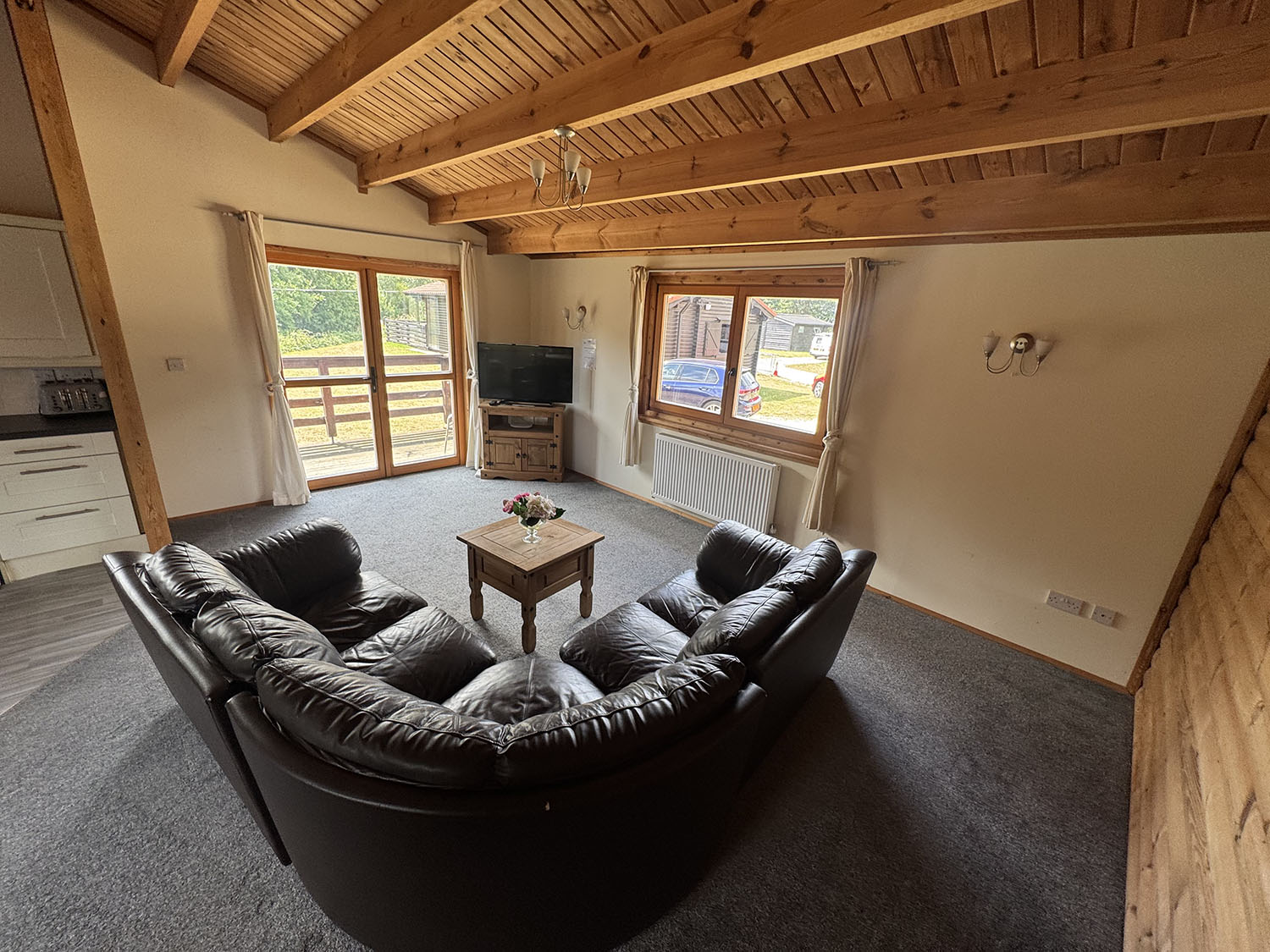 This spacious three-bedroom log cabin, built in 2006 by Pine Lodges UK, offers comfortable living in a peaceful country park setting. The lodge features a large open plan lounge and dining area with a fully fitted kitchen, creating a sociable space for relaxing or entertaining.