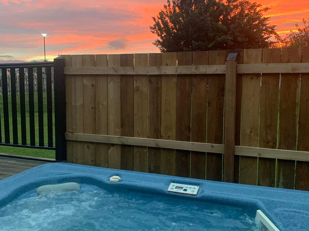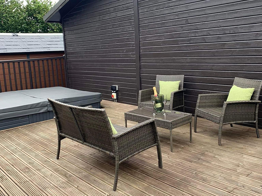 The lodge has a large decking area with hot tub. There's plenty of external storage and a full size shed.